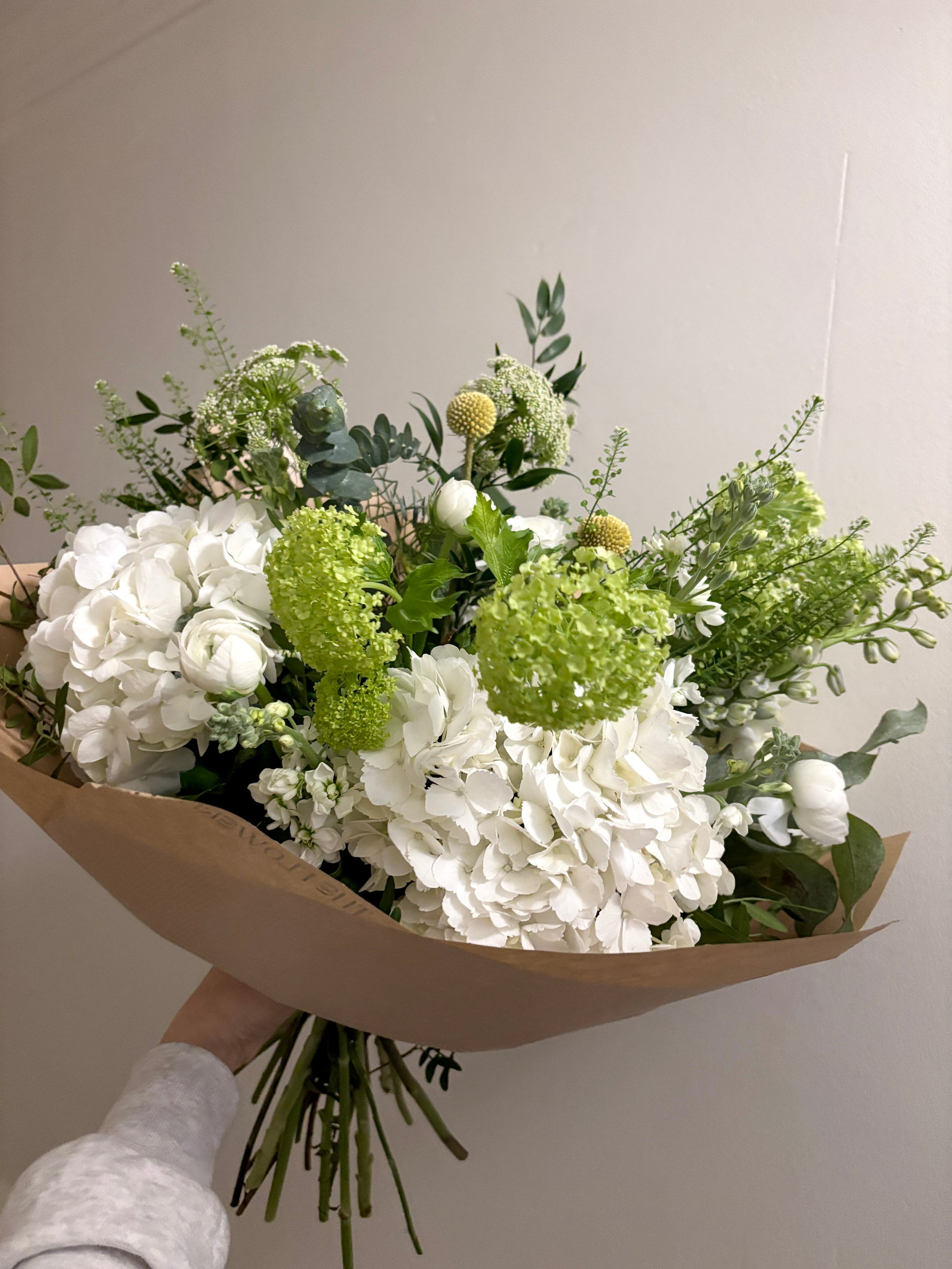 Created in The Flowerhood’s signature unruly style, each hand-tied arrangement is filled with a generous selection of seasonal stems, chosen fresh for their beauty and character. No two bouquets are ever alike, but each one is designed to feel joyful, generous and brimming with personality.